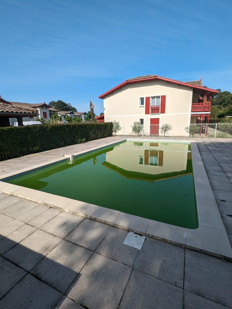 Lorsque l’eau d’une piscine vire au vert, c’est souvent le signe d’un déséquilibre de l’eau ou d’un manque d’entretien. À Biganos et dans tout le Bassin d’Arcachon, NICO PISCINES accompagne ses clients pour retrouver une eau limpide rapidement, puis assurer un entretien régulier tout au long de la saison. Grâce à des produits professionnels de haute qualité et un véritable savoir-faire, nous transformons des bassins totalement envahis d’algues en piscines parfaitement saines et prêtes à la baignade.